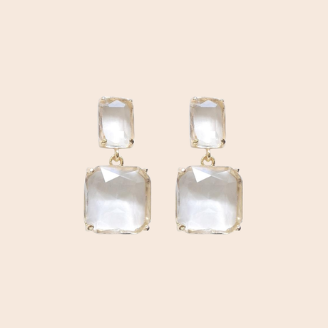 Clear Crystal Gold Twin Gem Earrings