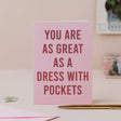 Great As A Dress With Pockets Glitter Card is backordered and will ship as soon as it is back in stock.