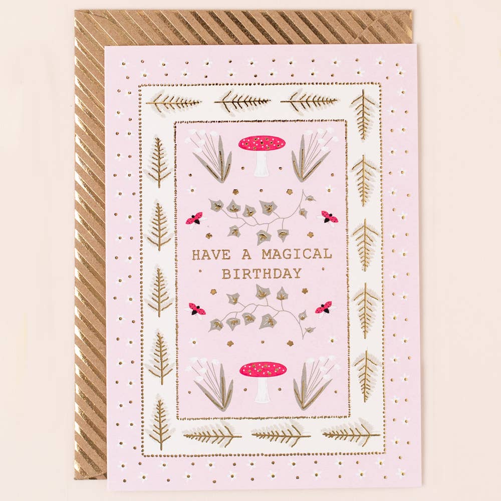 Wish somebody a magical Birthday with this toadstool pastel Birthday card.