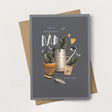 This greetings card features illustrated gardening tools with the caption ‘For a wonderful Dad, with love’.