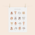 A ‘feelings’ print that fits with any colour interior, using a whole family of hand painted little animal faces to represent both happy and sad (because these matter too), helping encourage positive expression and understanding for the way children feel and behave.