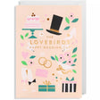 Congratulate the love birds on their wedding day with this charming greeting card. Soft pastels with striking gold foil detail and lettering make this card the perfect choice for the happy couple.
