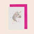This super cute card is embellished with an embroidered unicorn that can be removed and ironed onto clothing.