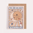 Tarot inspired love card with illustration reading "You are my sun, moon & stars".