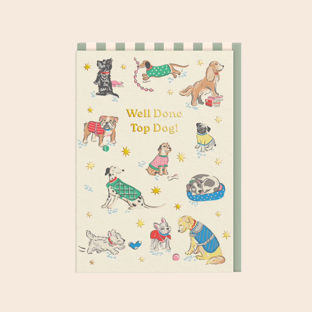 Capture the joy and excitement of a special occasion with our Top Dog Congratulations Card
