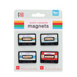 Cool set of four mini decorative magnets, each with a design and shape based on the classic compact audio cassette.