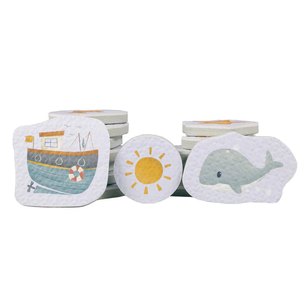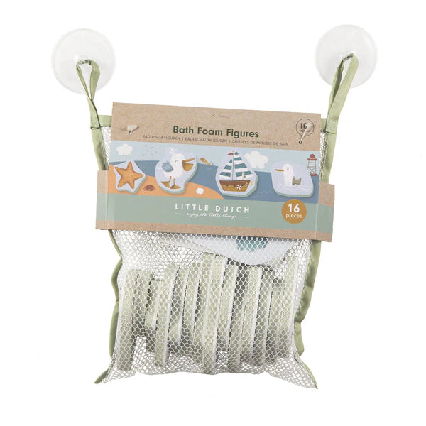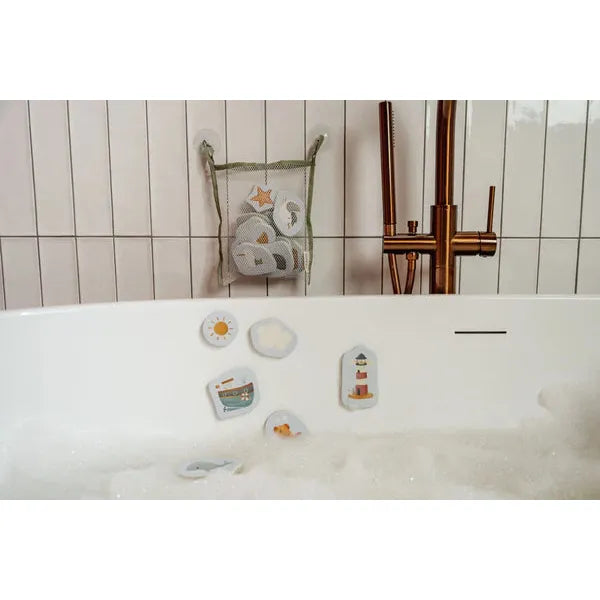 This set with 16 foam bath toys is decorated with the beautiful illustrations of the Sailors Bay collection. It will keep your little one entertained during bath time and encourages active and imaginative play as well as fine motor skills .