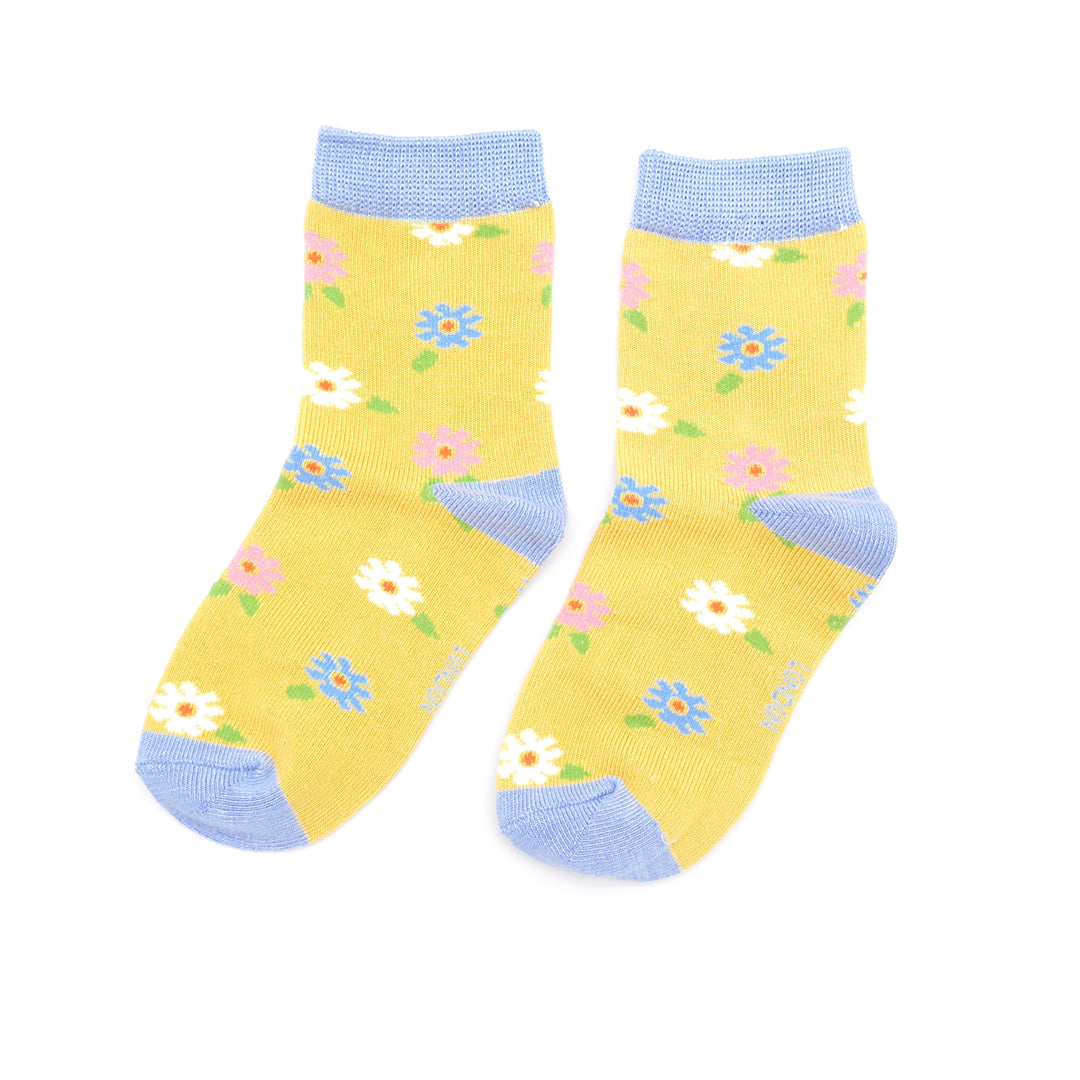 Ditsy Flowers Yellow Bamboo Socks - Age 7-9 Years