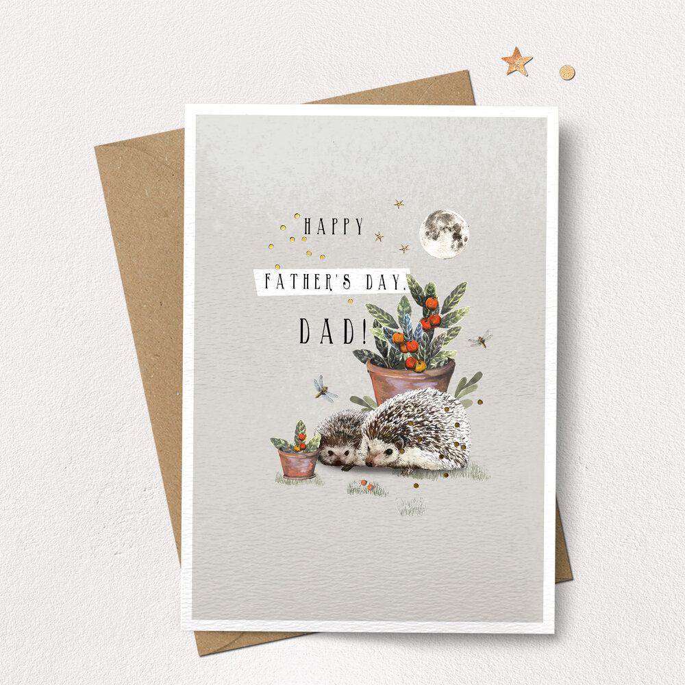 This greetings card features two hedgehogs with the caption ‘Happy Father’s Day, Dad!’.