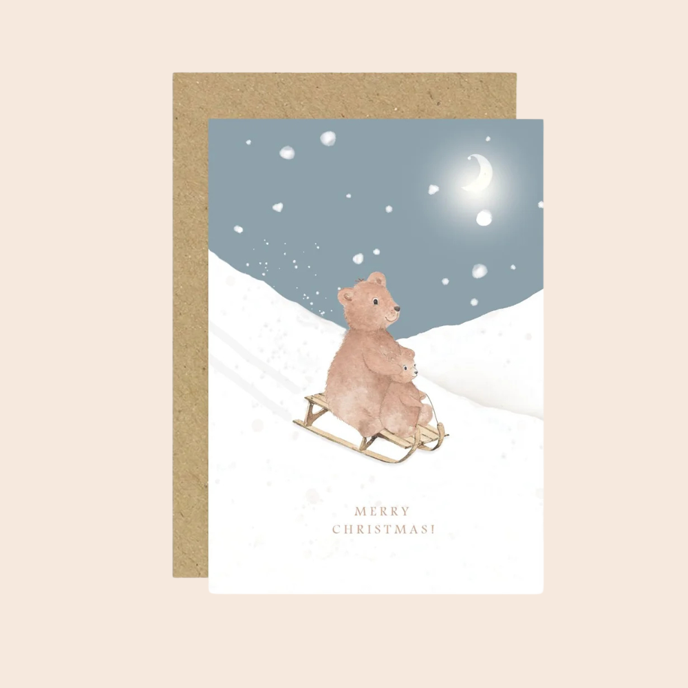 Sledging Bear Christmas Card is backordered and will ship as soon as it is back in stock.