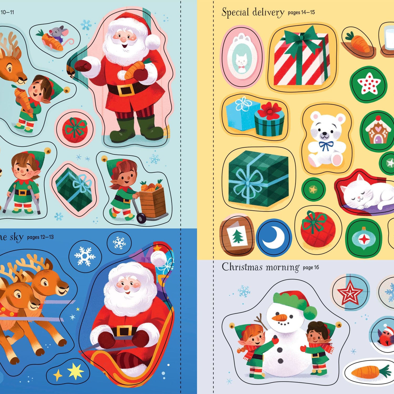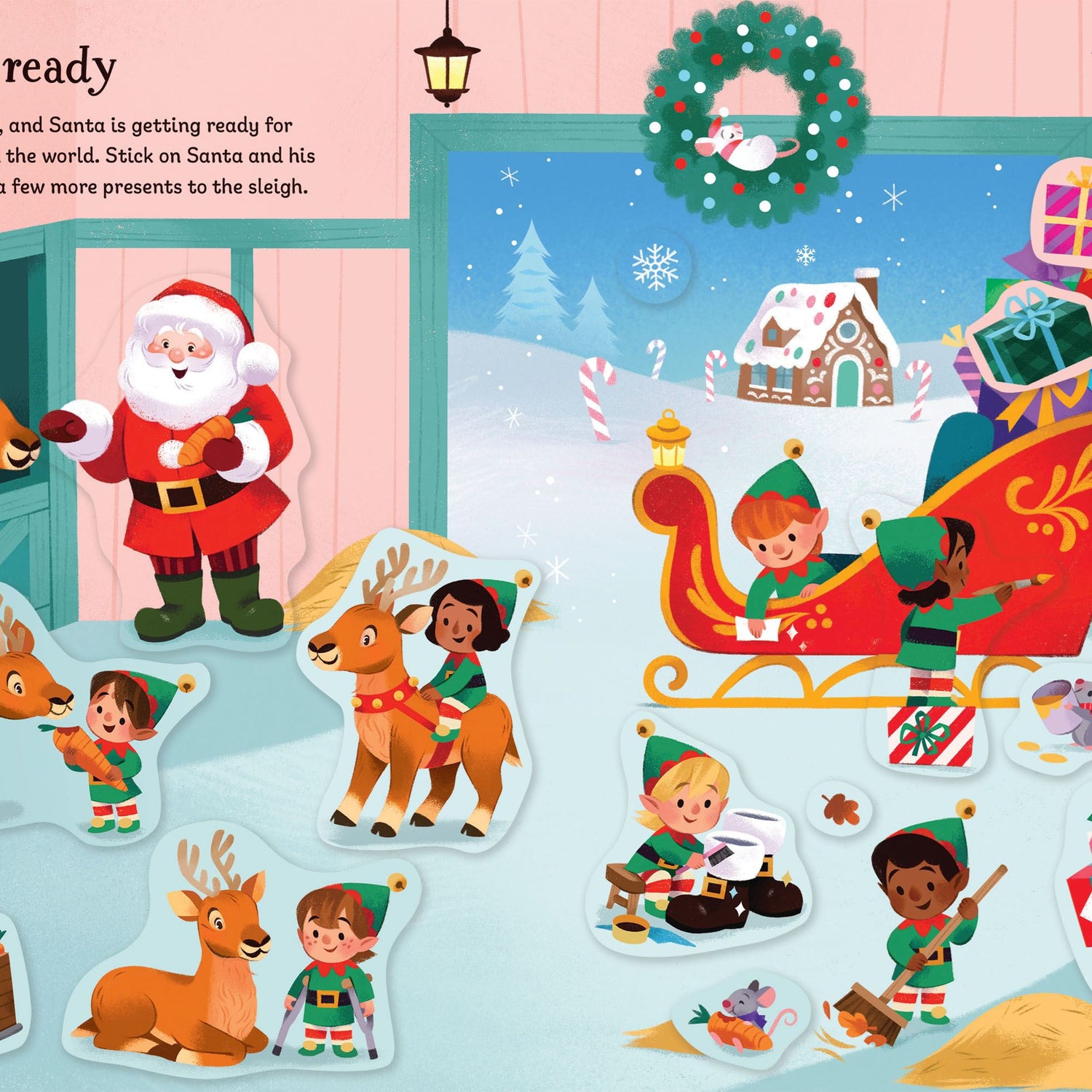 Join Santa as he checks his list, packs his sleigh and flies all around the world with his trusty reindeer. Add a little magic to the enchanting scenes with masses of sparkly stickers, and help Santa and his elves prepare for the big night.