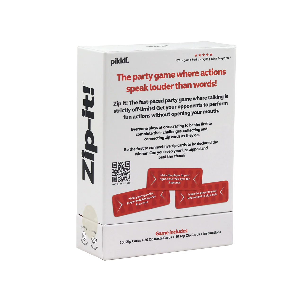 Everyone plays at once, racing to be the first to complete their challenges, collecting and connecting zip cards as they go.
