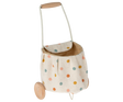 This small trolley is a very sweet accessory for your small friends. It is made of metal with wooden wheels and a cotton cover with a beautiful multi-dot print.
