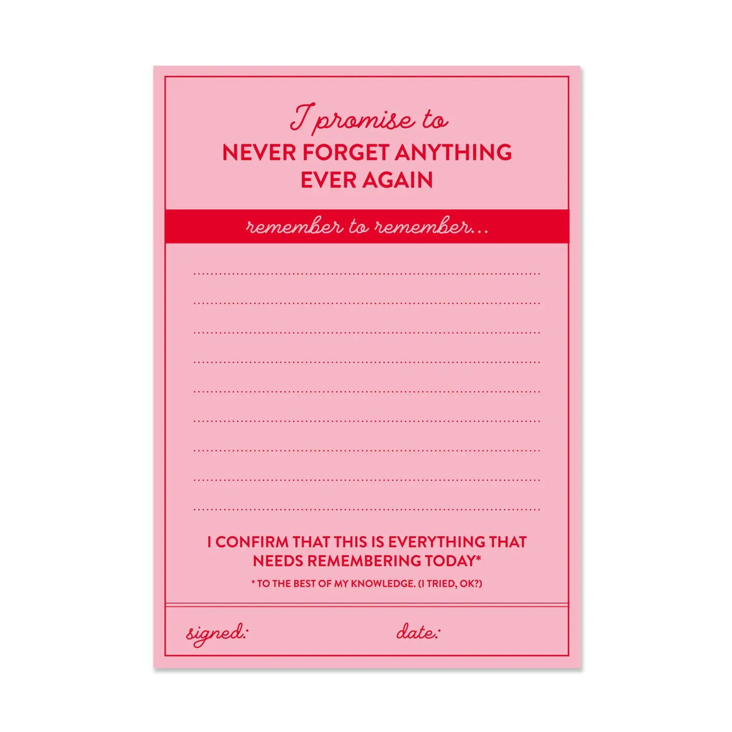 This is it... you'll never forget anything ever again with this handy list pad. Or at least you'll give it a good go!