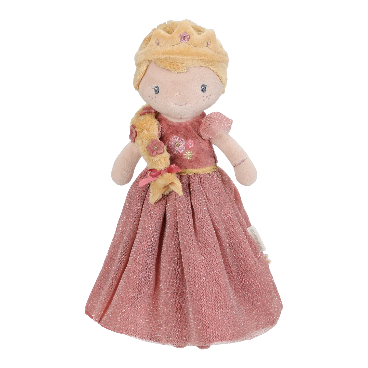 Meet Princess Julia, a soft cuddle doll with a beautiful blonde braid and sweet little flowers in her hair.