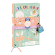 Includes a padlock and key AND a fun shaped sticker sheet with ballerinas, friendly forest animals and much more. There are multi-coloured ribbon page holders too. Pages are lined. Perfect for travel and taking out and about.