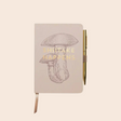 This luxurious soft cover notebook include a gold pen set in an elasticated holder and a ribbon page parker for added convenience.