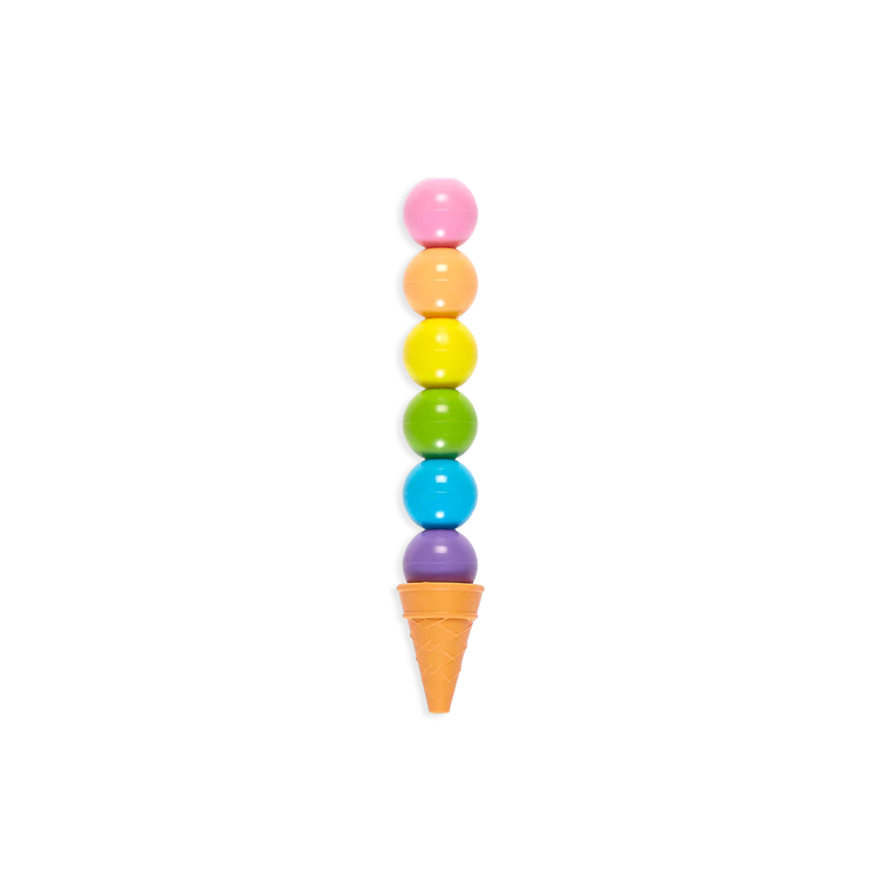 Rainbow Scoops Stacking Erasable Crayons are ice cream cone shaped stackable crayons.
